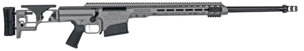 Bolt Action Rifle – 300 Winchester Magnum – 26 Fluted Barrel with 1:8 Twist – Capacity 10 Rounds – Free Floating – User changeable Barrel System – Threaded Muzzle 5/2×24 – Enclosed Bolt Guide – Premium Match Grade Trigger – Oversize Bolt Knob – Detachable Box Magazine – 22 Optics Rail – 10 Mil Rail Cant – Monolithic 7000 Series Monolithic Aluminum Upper – M-LOK Hand guard – Adjustable Cheek Riser – Adjustable Length of Pull – Folding Stock with Locking Hinge – Magnelock Technology – 6 QD Flushcup Mounts – Standard AR Grip Compatible – Overall length 40.4 – Weight 14.9 lbs – Tungsten Gray Finish