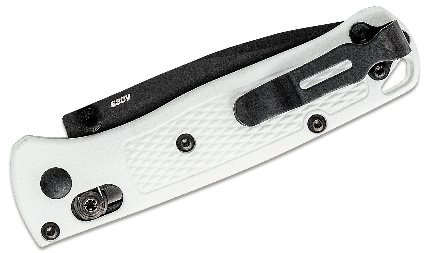 The Benchmade Bugout offers a lightweight, ergonomic build designed with everyday carry and general outdoor use in mind. Its high-performance CPM-S30V blade sports a partial swedge to provide a finer point, and comes fitted with black dual thumb studs for easy one-handed operation. The comfortable Grivory handle has been textured on either side for added grip without being abrasive. Comes complete with an oversized lanyard hole and reversible deep-carry clip for convenient EDC.