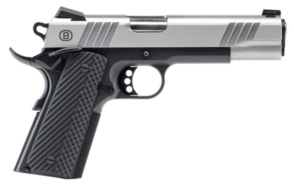 The B1911 Series embodies the rich heritage of the 1911 platform while integrating modern innovations for unparalleled reliability and accuracy. Built from 416 stainless steel and chambered in .45 ACP the B1911 Series 1911s all feature VZ Grips for enhanced grip texture dovetailed tritium night sights and an ambidextrous thumb safety. Elevate your shooting experience with this exceptional firearm where tradition meets innovation in every shot. – SKU B19117050SBBK – Action SAO – Trigger Pull 3.5 lbs – Caliber .45 AUTO – Capacity 8+1 – Frame Material 416 Stainless Steel – Frame Size Full Size – Front Sight Tritium Night Sight – Rear Sight Notched-Bar Dovetail – Safety Grip Safety – Height 5.5 in – Series B1911 – Weight 39 oz – Slide 416 Stainless Steel – Width 1.3 in – Model B1911 Two-Tone