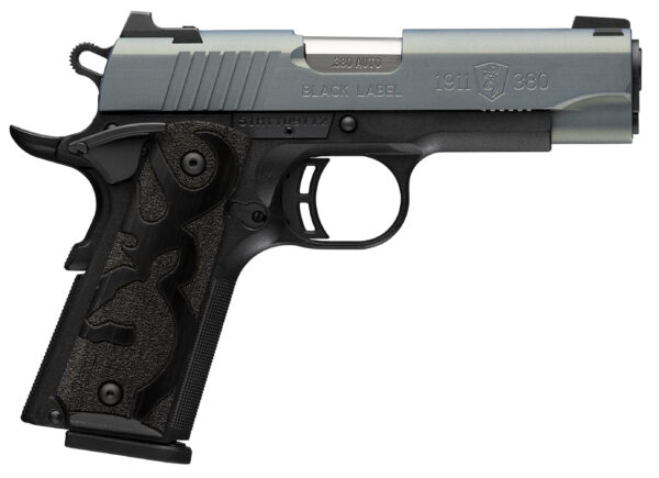 2024 SHOT Show Special- Compact lightweight Model 1911-style 380 ACP autoloading pistol. Machined stainless steel slide with a Cerakote finish. Fitted with steel 3-dot sights extended ambidextrous manual safety beavertail grip safety and skeletonized hammer. Eight-round magazine capacity. – Features – Stainless steel slide with Cerakote finish – Composite frame with machined 7075 aluminum sub-frame – 3-5/8 barrel – Steel 3-Dot sights – Black stippled laminated wood grips with Buckmark logo – Extended ambidextrous manual thumb safety – Extended slide release – Beavertail grip safety – Commander-style hammer – Includes two 8-round magazines – Includes pistol rug