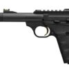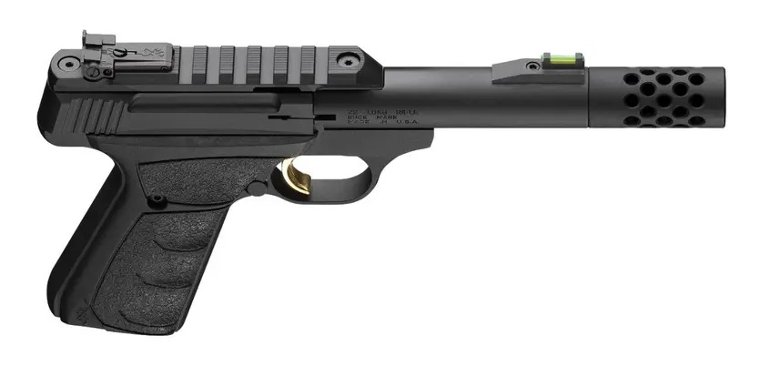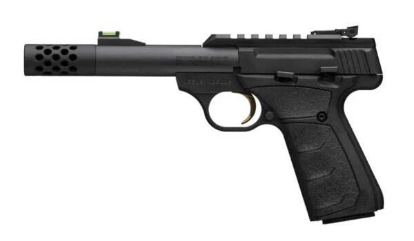 The Browning Buck Mark Plus Micro Bull, SR is built for a day of plinking or even competitive shooting. The single-action, blowback operated autoloading design is one of simplicity and reliability. The controls are easy to reach and use. This model features a 4.4″ steel barrel that retains heft to improve accuracy and add maneuverability. A thread-on muzzle brake uses 1/2″-28 suppressor ready threads to reduce recoil and muzzle rise.