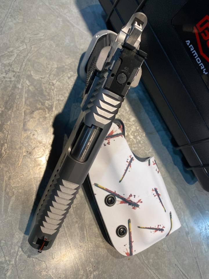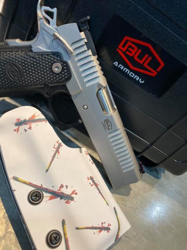 This is the top of the line double layer Red Hill Tactical Bul Armory holster as used by many shooters around the country. The design stemmed from several top tier shooters sitting around in 2014 with a low cut single layer holster. We were not happy with the movement and flex. One of them said “Hey Bob, add a second layer”. The very next day the RHT double layer holster was born and always proudly Made in the USA. Since then this has been the leading holster in USPSA nationals data for multiple divisions including carry optics and production over many years.