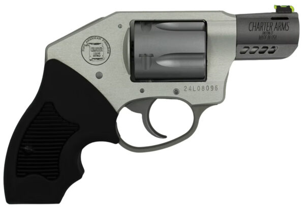 The Charter Arms® Coyote Series is a new series of rimless revolvers that utilize moon clips. The Coyote is the smallest lightest .380 five-shot revolver on the market. Providing a sleek concealable firearm for personal protection. The ease to carry and handle with its light weight and low recoil allows new defense ammunition to be shot effortlessly. Equipped with a ported barrel and diamond cuts the combination of stainless steel and aircraft aluminum as well as two moon clips make the Coyote a top choice for self-defense carry. – Caliber: .380 ACP – Capacity: 5 Shot – Frame: Small – Frame Material: Aluminum – Finish: Clear Anodized Frame & Stainless Steel Components – Grip: Small Compact Rubber – Sights: LitePipe – Hammer: Concealed – Barrel: 2 Ported – Weight: 13 Ounces – Length: 6.25 – Height: 4.25