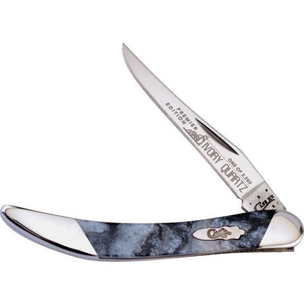 3″ closed. Stainless long clip blade. Ivory Quartz Corelon handle with slanted nickel silver bolsters and inlay shield. Premier Limited edition of 2,500.