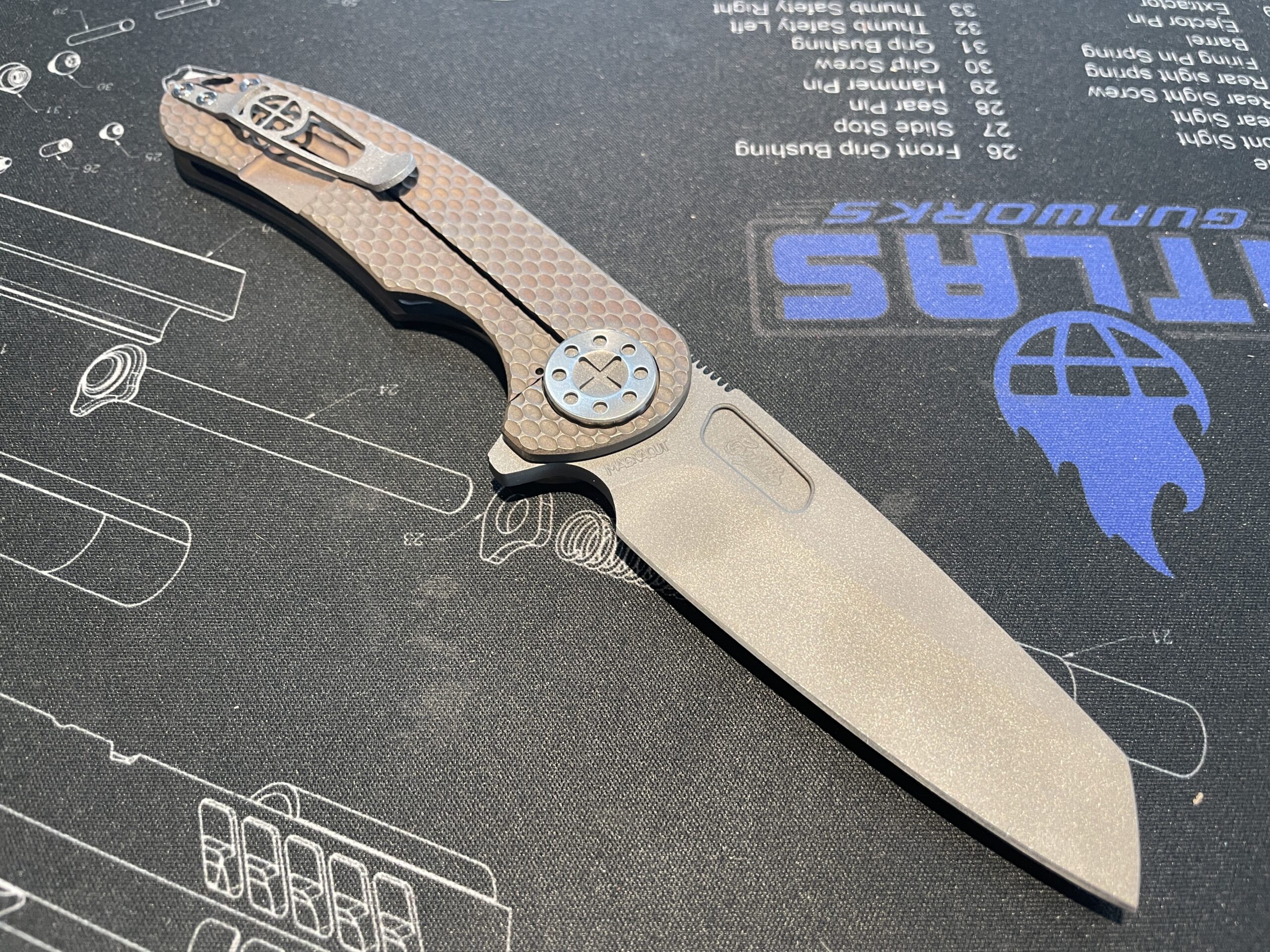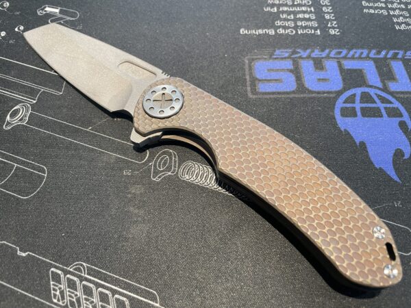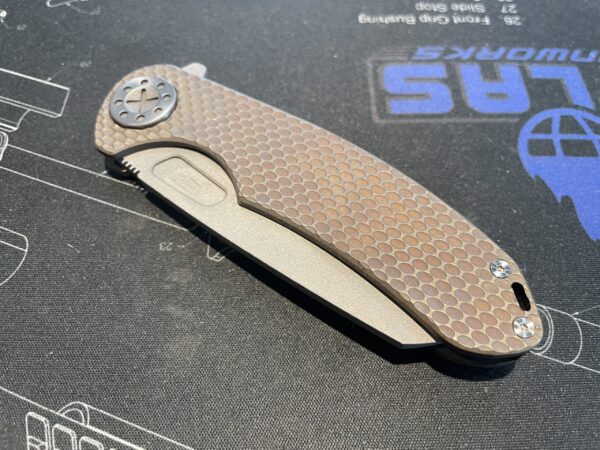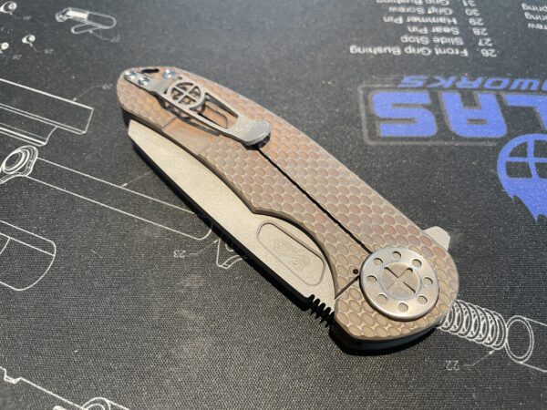 The Large F3 from Curtiss Custom Knives is made in the USA with pride and care. Made from a solid titanium frame, milled to exacting tolerances, and finished with some of the smoothest touches available. These knives feature a steel insert in the lock bar to aid in ease of release of the lock. The patented S.P.O.T. pivot system has a large diameter in order to stop blade rock from happening. These knives truly set the standard.