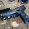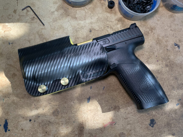 It is available only in the tried and true double layer configuration. This features two layers of .08 thick Kydex to add a great deal of structure to your holster. The extra rigidity supports the low cut that we use, as well as reduces the flex and bounce that happens when you cut this much out of a single layer of Kydex. In addition to the stability, it gives you the ability to further add to the custom look of your rig. We feature everything from solid colors, carbon fiber look, and many custom camouflage patterns including Kryptek, Supercam, Hexcam and more.