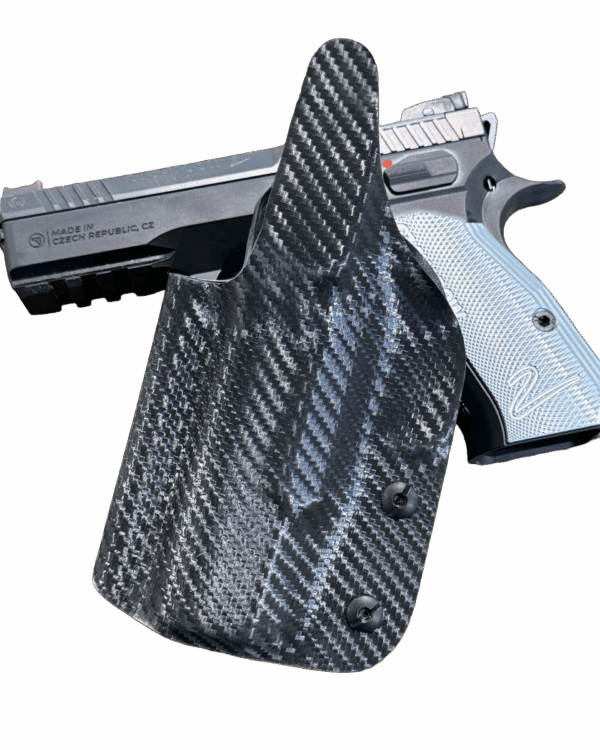 As we started working through the design process of the competition CZ Shadow 2 Compact holster, we decided that the same thing had to occur with an inside the waistband concealment holster. We knew that shooters wanted speed from the holster and rigidity, but the double layer was just too thick, so we stuck with a single layer, but continued to mold it using what we learned from our competition holsters. We then started cutting off material everywhere we could to try to get it as thin and small as we could, but still include the adjustable retention that people want. As always we have kept all of our holsters proudly Made in the USA.