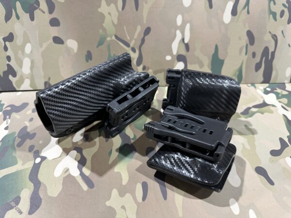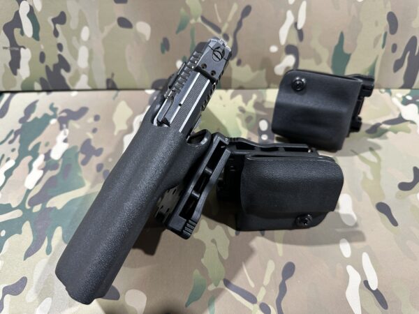 We also modified the cut somewhat on the range ready holster. We know not everyone is going to compete with their gear, so we made a shallower scoop cut in order to maintain more rigidity to the holster. We then sent these holsters to many of our sponsored shooters in order to test the speed and longevity of the design. Everyone was very happy, as they kept most of the speed, and were able to have a bit more protection to the gun.
