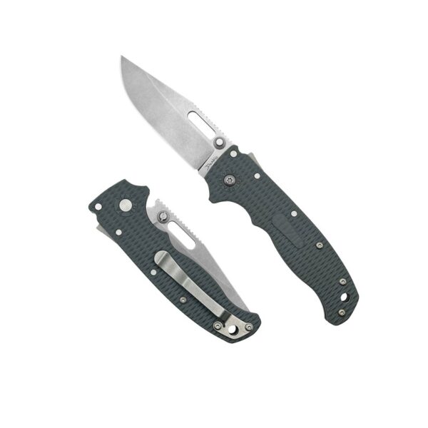 The AD20.5 by Demko Knives features the all-new Shark-Lock™. The Shark Lock mechanism is situated on the spine of the knife and operated with a ramp-like ‘fin.’ Available in two different blade shapes, this knife features ball bearings on the pivot pin, steel liners, and a left-handed pocket clip included.