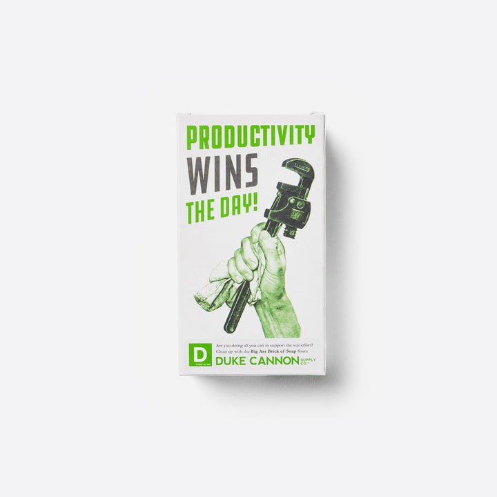 To honor the military heritage of our Big Ass Bricks of Soap, this particular item comes in our limited edition WWII-era propaganda package, reminding you that Productivity Wins the Day.