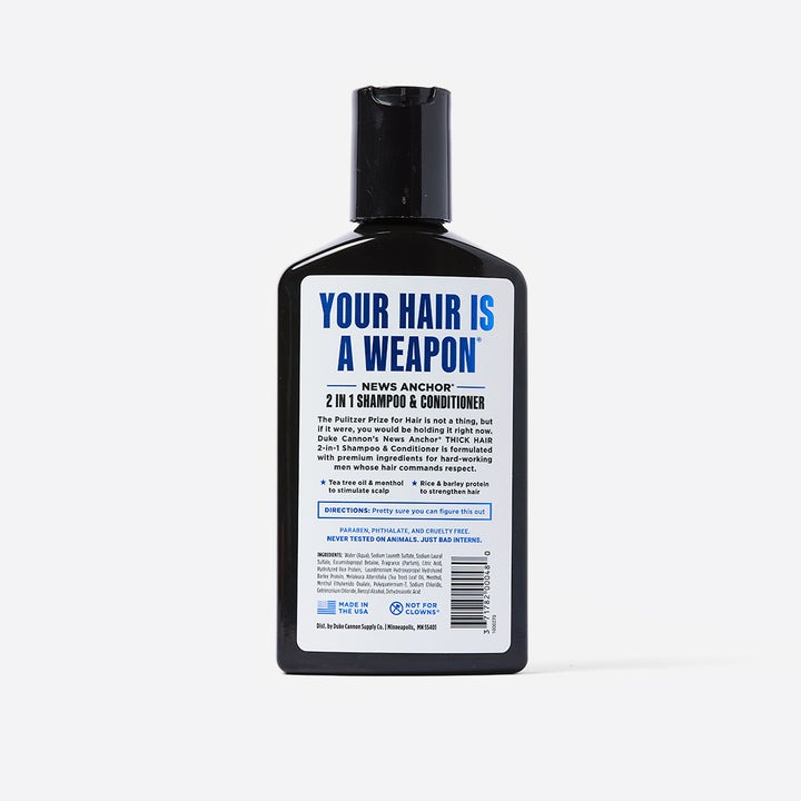 The Pulitzer Prize for Hair is not a thing, but if it were, you would be holding it right now. Duke Cannon’s New Anchor Thick Hair 2-in-1 Shampoo & Conditioner is formulated with premium ingredients including tea tree oil and rice protein to stimulate the scalp and strengthen hair. Our Naval Diplomacy scent features bergamot and aquatic musk, temporarily turning your noggin into the best smelling place on Earth.