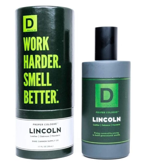 Inspired by nature, Duke Cannon’s Lincoln Proper Cologne is made with naturally derived fragrance oils, crafted in small batches, and housed in a modern apothecary-style bottle. Lincoln is a fresh, yet nostalgic, scent that blends notes of leather and oakmoss with a hint of mandarin.