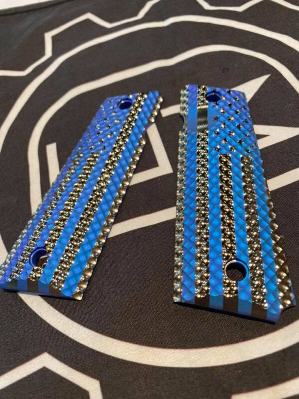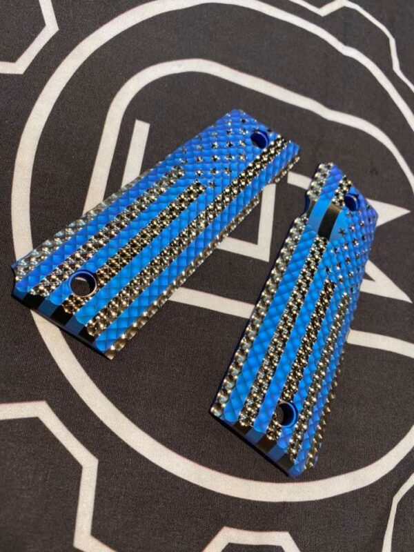 Titanium 1911 Pistol Grips – USA Flag – Velcro Style an aggressive feel