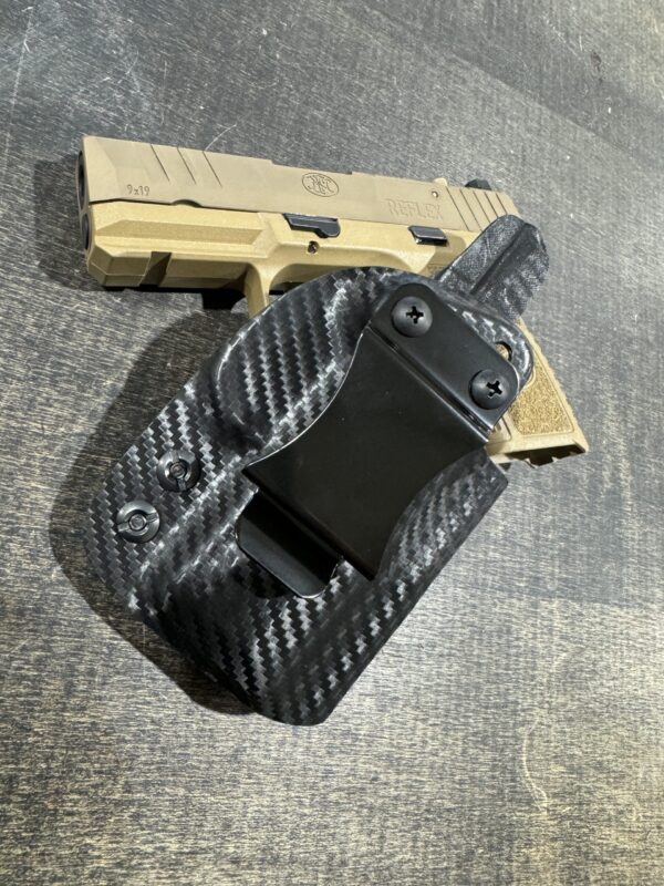What about the cut, well the low cut really is not necessary on an IWB holster, but over time we have found that people are putting various optics on their FN Reflex including the Trijicon SRO, various Holosun Dots, and Vortex optics options on their pistols. So you can as an option instead of the full shield and surround have an optics cut put on your RHT IWB holster.