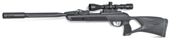 Ten shots zero reloads endless possibilities. The GAMO Swarm Fusion .22 10X GEN3i is the second generation of our Swarm technology featuring a horizontal magazine integration and open sights making the Swarm Fusion 10X GEN3i .22 lighter more compact and lower profile. The second generation 10X offers a smoother operation and improved accuracy. Simply break the barrel and fire for lightning-quick follow-up shots. – The Swarm Fusion 10X GEN3i .22 features the Whisper Fusion sound dampening the quietest noise reduction technology patented by GAMO. The pellet goes through two different chambers compressing and preventing noise expansion. The Inert Gas Technology (IGT) gas piston delivers steady and consistent power increasing accuracy and durability with less vibration. This pellet rifle incorporates GAMO’s CAT (Custom Action Trigger) a two-stage adjustable trigger that provides a crisp clean and smooth trigger pull for improved accuracy. – GAMO designed the Swarm Fusion with the Recoil Reducing Rail that maximizes the scope lifespan because of its 99.9 percent recoil compensation designed for high-power air rifles. The Swarm Fusion combines the latest state-of-the-art GAMO technologies in one air rifle delivering an outstanding solution for pest control and hunting. – Every Swarm Fusion 10X GEN3i .22 multishot pellet air rifle includes 10 shot magazine. – Caliber 0.22 – Velocity: 1000 feet per second (fps) with Alloy Pellets – Action: 10X GEN3i Ten-Shot Auto-Loading Technology Upgraded Inertia Fed Technology – Noise dampening: WHISPER FUSION – Powerplant: IGT Inert Gas Technology gas piston – Barrel: Fluted polymer jacketed rifled steel barrel with WHISPER FUSION noise dampening technology – Trigger: Two stage independently adjustable CAT (Custom Action Trigger) – Stock: Automotive grade glass filled nylon all-weather thumbhole – Checkering: Non-Slip texture design on grip and forearm – Recoil Pad: SWA (Shock Wave Absorber) Recoil pad with up to 74% recoil absorption – Safety: Manual safety and automatic cocking safety system* – Optics: GAMO 3-9×40 air rifle scope with rings (shockproof fogproof) – Rail: 11 mm aluminum rail RRR (Recoil Reducing Rail) – Warranty: 5 Year – Weight: 5.78 lbs – Length: 45.7 in – Length of Pull: 15 in – Ammunition: Any .22 Cal. Pellet – Trigger Pull: 3.2/2.6 lbs – Barrel Length: 20.5 in – Cocking Effort: 30 lbs