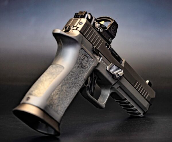 FITS SIG P320, X5, LEGION, X CARRY, M18 AND M17, X10, AXG ALL CALIBERS AND FRAME SIZES. ALSO FITS MOST SIG P250. X10 WITH FACTORY COMP DOES NOT FIT.