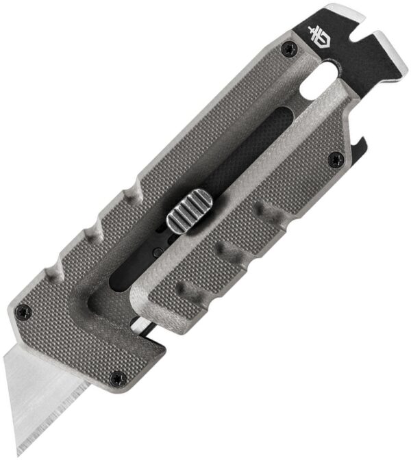 .25″ closed. Gray G10 handle. Tools include: Belt/cord cutter l Bottle opener l Pry bar l Flat head screwdriver l Lanyard loop l Wire stripper l Small screwdriver. Nail puller. Full size replaceable utility blade with slide lock.