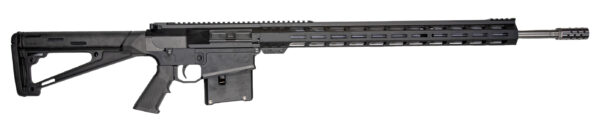 300 WIN MAG: – Barrel: 24 superior quality stainless steel (416R) with 5R rifling 1:10 twist = Overall length: 45.5 – Weight: 10.2 lbs – Muzzle Brake: 5/8 x 24 stainless steel (416R) – Lower: Aluminum billet (7075) – Upper: Aluminum billet – Handguard: 20 Aluminum M-Lok upper picatinny rail – Gas Block: .750 4150 Steel Black Oxide Coated – Gas System: Rifle – Stock: Hogue fixed rifle stock black – Magazine: GLFA custom aluminum 5 round black ( In the picture it’s still aluminum but it won’t be for production) – Grip: Standard – BCG: Custom design – Charging Handle: Custom design – AR-10 Compatible parts: Lower parts kits trigger safety