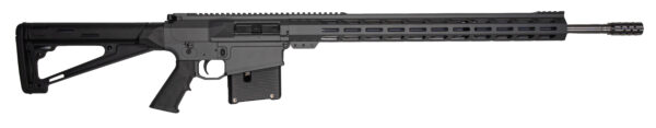 300 WIN MAG: – Barrel: 24 superior quality stainless steel (416R) with 5R rifling 1:10 twist = Overall length: 45.5 – Weight: 10.2 lbs – Muzzle Brake: 5/8 x 24 stainless steel (416R) – Lower: Aluminum billet (7075) – Upper: Aluminum billet – Handguard: 20 Aluminum M-Lok upper picatinny rail – Gas Block: .750 4150 Steel Black Oxide Coated – Gas System: Rifle – Stock: Hogue fixed rifle stock black – Magazine: GLFA custom aluminum 5 round black ( In the picture it’s still aluminum but it won’t be for production) – Grip: Standard – BCG: Custom design – Charging Handle: Custom design – AR-10 Compatible parts: Lower parts kits trigger safety