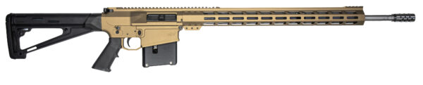 Barrel: 24 superior quality stainless steel (416R) with 5R rifling – Muzzle Brake: 5/8 x 24 stainless steel (416R) – Rifling: 1:8 Twist – Lower: Aluminum billet (7075) – Upper: Aluminum billet – Handguard: 20 Aluminum M-Lok upper picatinny rail – Gas Block: .750 4150 Steel Black Oxide Coated – Gas System: Rifle – Stock: Hogue fixed rifle stock black – Grip: Standard – BCG (Bolt Carrier Group): Custom design – Charging Handle: Custom design – AR-10 Compatible parts: Lower parts kits trigger safety – Magazine: GLFA custom aluminum 5 round black – Magazine has open witness window and tabs to pull down for easy loading