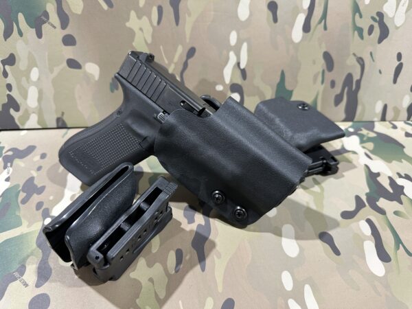 The magazine pouch is our closed front design that allows for a quick draw of the magazine, while maintaining levels of retention that meet our needs. Again, this is made from 0.125 Kydex to make a super strong product that just works.