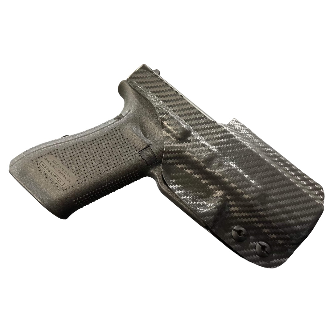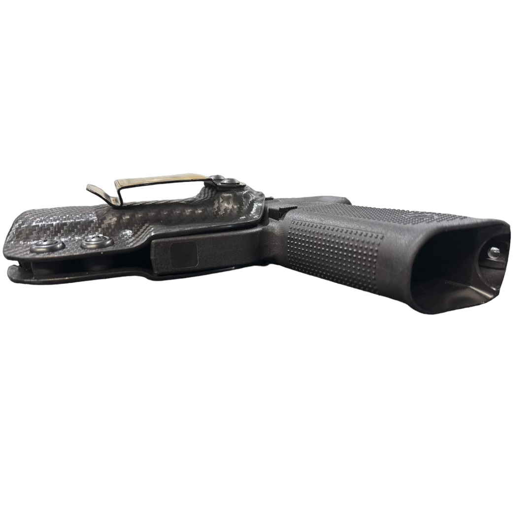 As we started working through the design process of the competition Glock 19 or Glock 45 holster, we decided that the same thing had to occur with an inside the waistband concealment holster. We knew that shooters wanted speed from the holster and rigidity, but the double layer was just too thick, so we stuck with a single layer, but continued to mold it using what we learned from our competition holsters. We then started cutting off material everywhere we could to try to get it as thin and small as we could, but still include the adjustable retention that people want. As always we have kept all of our holsters proudly Made in the USA.