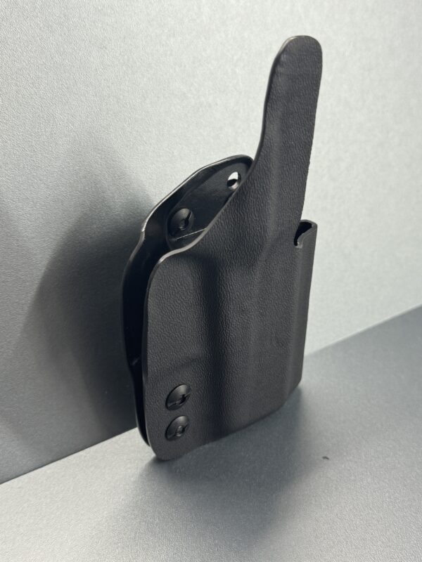 As we started working through the design process of the competition Glock 43 and 43x holster, we decided that the same thing had to occur with an inside the waistband concealment holster. We knew that shooters wanted speed from the holster and rigidity, but the double layer was just too thick, so we stuck with a single layer, but continued to mold it using what we learned from our competition holsters. We then started cutting off material everywhere we could to try to get it as thin and small as we could, but still include the adjustable retention that people want. As always we have kept all of our holsters proudly Made in the USA.