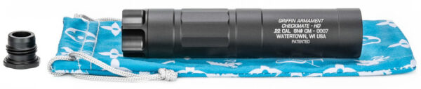Due to popularity of our beloved legacy product the CHECKMATE-QD suppressor we present to you the CHECKMATE-HD suppressor. This new CHECKMATE-HD is a 5.8 ounce 5.7×28 pistol rated rimfire suppressor and utilizes our patented ECO-FLOW baffle technology as well as our newly developed CARBON-GARD technology- the subject of a pending patent. The 5.8 ounce 5.04 overall length suppressor features a 17- 4 heat treated ECO-FLOW baffle system front cap and integrated EZ-LOK QD mounting system. The tube is 7075-T6 billet machined and hardcoat anodized for maximum strength. The CHECKMATE-HD is the new market leader in rimfire suppressors. – The CARBON-GARD technology seals the entire baffle core with high temperature Silicone O-rings. This allows the suppressor to be more user maintenance friendly than any other rimfire suppressor on the market. After 2000 rounds are fired the inside diameter of the tube and outside diameter of the core are still spotlessly clean for ease of disassembly without specialized tools other than a US quarter. – Extensive workup was done to the baffle system resulting in a baffle system with zero first round pop and a market leading sound pressure level (SPL) on rifles and pistols. – The CHECKMATE-HD comes with an EZ-LOK 1/2×28 barrel adapter and is field ready out of the box. The only supporting accessory outside of various threaded barrel end couplers is a CAM-LOK® rear mount making this suppressor very simple and straightforward for end users to understand and utilize. Unbeatable sound performance unparalleled ease of maintenance and servicing light weight high strength historically accurate CHECKMATE-QD mounting and incredibly competitive pricing are the user benefits of the CHECKMATE-HD suppressor. – What’s in the box? – Checkmate-HD suppressor – EZ-LOK Barrel Adapter 1/2×28 – Branded Griffin pouch – Manual – Features : – EZ-LOK QD mounting interface and adapter included – Taper locking QD interface ensures security and accuracy – Unique patent pending CARBON-GARD tech offers an unbeatable user maintenance experience – Premium 17-4 H900 heat treated stainless steel & 7075-T6 outer tube – Patented ECO-FLOW baffle system for reduced blow back and optimally tuned sound performance – Patented flash reducing tool-less end cap – PVD and hardcoat anodize provide increased surface hardness corrosion and wear resistance – Warrantied for life with Griffins Perpetual Lifetime Warranty – Specs : – Diameter: 1.07 – Overall Length: 5 – Weight: 5.8 Ounces – Materials: 7075-T6 Aluminum & 17-4 Stainless Steel – Attachment: EZ-LOK & CAM-LOK® – Finish: PVD & Type III Hardcoat Anodized
