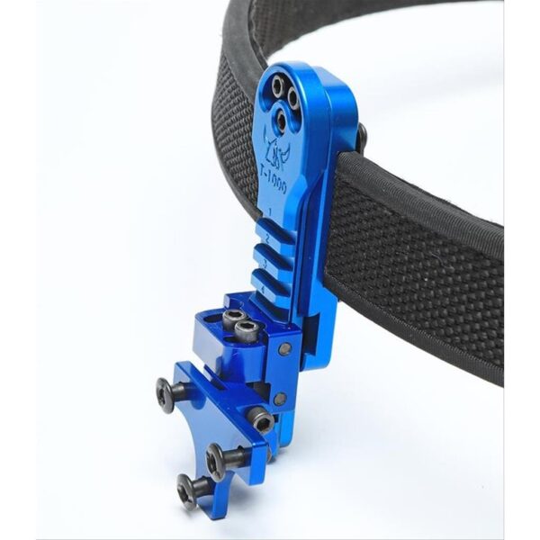 It fits either 1.5″ or 1.75″ belts and uses two metal straps to secure it. We have threaded holes on the back of the belt attachment and the ladder (picatinny rail) for spacer pads.