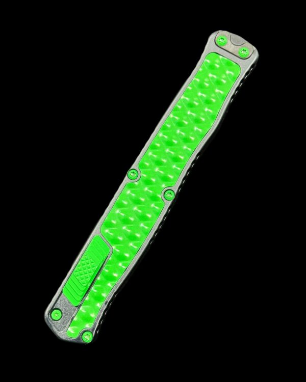 By increasing OA length by 1.25″, version II maximizes the blade-to-handle ratio and makes the Cleric blade one of the longest in the Heretic lineup. The now-slender handle design mimics the contours and scallops of the original Cleric and features a textured stainless inlay that is both fierce and functional. Deployed using a textured thumb slide on the face of the handle, this hard-firing blade defies expectations and redefines what a OTF knife can be.