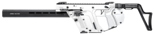 Caliber 45ACP – Model Vector CRB – Action Semi-Automatic – Operating System Closed Bolt Delayed Blowback – Barrel Length 16.0 in / 406.4 mm – Overall Length Collapsed 34.9 in / 887.5 mm – Magazine(s) included (1) 10 Rounds – Color Alpine – Weight 7.7 lbs / 3.5 kg – Barrel Material 4140 Chrome Moly – Barrel Finish Black Nitride (QPQ) – Barrel Threading .578×28 RH – Trigger Type Pivoting Single Stage – Stock Fixed Stock