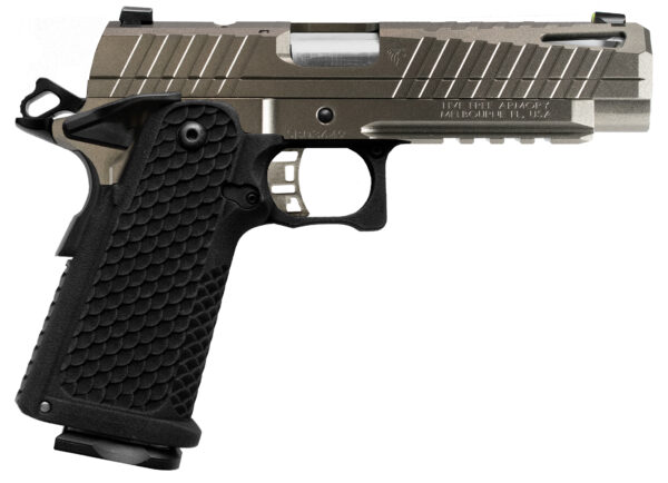 The Apollo 11 Compact 9mm Pistol offers the same exceptional blend of style and performance as its full-size counterpart tailored for those seeking a more compact and maneuverable firearm. This version features a 4.15-inch barrel making it an ideal choice for concealed carry or for users who prefer a more compact profile without sacrificing the superior functionality of the Apollo series. Despite its reduced size the compact model maintains a robust double-stack magazine capacity of 17+1 rounds of 9mm ensuring that firepower is not compromised. – Engineered with precision the Apollo 11 Compact retains the hallmark features of its larger version. It boasts a heat-treated 416 stainless steel slide and a durable 4140 steel frame providing reliability and a sophisticated appearance. The pistol’s shorter barrel is matched with a meticulously tuned trigger system for a crisp consistent pull and a left-hand 1:16 rifling ensuring remarkable accuracy in a smaller package. The compact design enhances concealability and handling while the innovative recoil reduction system and ergonomic grip texture offer comfortable shooting and effective control. Equipped with an RMSc optic cut and accessory rails this compact model offers versatility and customization making it a top choice for both everyday carry and tactical applications.The Apollo 11 Compact is a testament to Live Free Armory’s dedication to quality and innovation backed by a Lifetime Warranty with reliability guaranteed. – Caliber 9x19mm – Weight (No Magazine) 32.61 oz – Slide Width 0.925 – Width (Overall) 1.21 – Slide Length Complete 6.63 – Length (Overall) 7.5 – Height (Overall) 5.46 – Magazine Capacity 17 – Barrel Length 4.15 – Barrel Rifling 1:16 Left Hand – Length of Twist 4.11 – Trigger Pull 3.5lbs – 4.5lbs – Trigger Travel 0.310 – Sight Radius 5.62 – Model Apollo 11 – Optic Cut (Footprint) RMSc