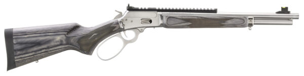 This American-made lever-action rifle was manufactured with great pride and attention to detail. You can expect the same time-honored design combined with Ruger’s trusted reputation for producing high-quality reliable firearms. – Specifications – Model # 70432 – Caliber 44 Rem Mag / 44 Special – Capacity 8/9 – Stock Gray Laminate – Material Stainless Steel – Finish Polished Stainless – Front Sight Fiber Optic with Tritium Ring – Rear Sight Adjustable Ghost Ring – Weight 6.3 lb. – Overall Length 33.25 – Length of Pull 13.38 – Barrel Length 16.1 – Thread Pattern 5/8-24 – Thread Cap Match-Polished – Barrel Cold Hammer-Forged Stainless Steel – Twist 1:20 RH – Grooves 6 – Features – Receiver lever and trigger guard plate are CNC machined from 416 stainless steel forgings. – Barrel is made of 410 stainless steel and is cold hammer-forged which results in ultra-precise rifling that provides exceptional accuracy and longevity. – Threaded barrel with factory-installed thread protector has a 5/8-24 pattern to accommodate a muzzle brake or other barrel accessories. – Picatinny rail provides a stable mounting surface for scope rings and a variety of modern optics. – Fiber optic front sight with a tritium ring for improved visibility in low light conditions. – Tubular magazine features a loading gate located on the receiver and will accept 8 rounds of .44 Rem Mag or 9 rounds of .44 Special ammunition. – Soft-rubber buttpad effectively absorbs recoil. – Positive push-button cross-bolt manual safety and traditional half-cock hammer. – Reliably feeds a wide range of .44 Rem Mag and .44 Special factory ammunition. – Durable laminate buttstock and forend remain dimensionally stable in varying weather conditions. – Sharp checkering provides an excellent grip in all weather conditions. – Oversized lever loop provides clearance for operation with heavy gloves. – Slim forend for an attractive look and comfortable feel. – Also includes: Sling swivel studs offset hammer spur.