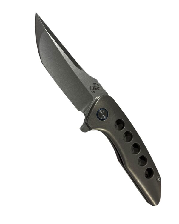 The Mechforce Barker Collab Hokkaido is a masterfully engineered flipper knife that merges strength, precision, and sophisticated design. Its 3.5-inch CPM-MagnaCut tanto blade, finished with a striking stonewashed treatment, boasts outstanding edge retention, wear resistance, and durability. The compound grind enhances its cutting adaptability, while the with holes titanium handle provides a secure and ergonomic grip. Built with a sturdy frame lock, smooth ceramic bearings for effortless action, and a titanium pocket clip for tip-up carry, the Hokkaido is designed for serious everyday performance.