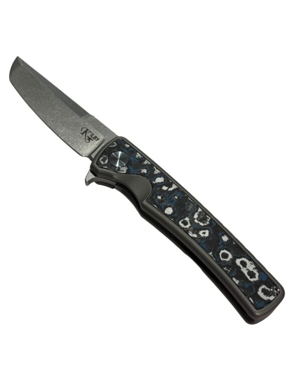This remarkable folder by Paul Tony Kilby, inspired by the Japanese tanto, seamlessly merges classic katana aesthetics with modern engineering precision. The Bohler M390 blade is compound hollow ground to enhance cutting performance, and Kilby’s signature large flipper tab enables quick deployment while also serving as a finger guard for added control and safety. Crafted from a single piece of titanium, the integral handle features various carbon fiber inlays, blending strength with a sophisticated look. The design is completed with a robust frame lock, making this a standout choice for collectors and knife enthusiasts alike—an impressive value at its price.