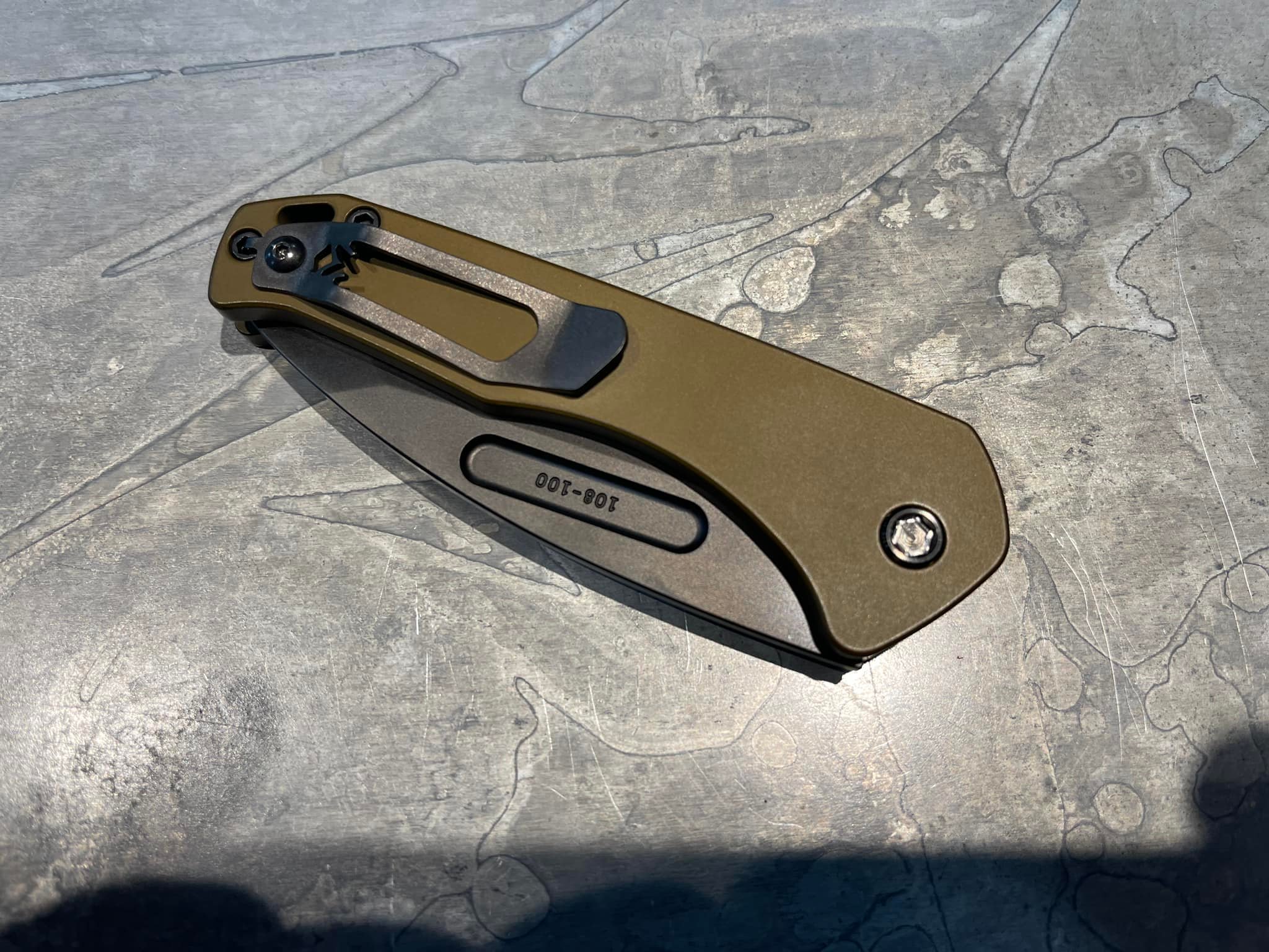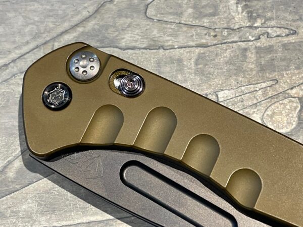 Our first-ever automatic knife. Greg’s twist on America’s most notorious folder. Informed by our best-selling Praetorian line, the Swift has an unapologetic pedigree. This offering comes in OD Green, 6061 AI handles with type III class 2 hard ano, CPM S35VN tumbled tanto blade, Ti pivot screws, Ti hardware and Ti clip with stainless assembly screws. This is pocket friendly and now available to everyone. Expect an industry leading action with no side, radial or axial play in the deployed position. This is not just another “aluminum handled auto knife” but rather a whole new level of detail and performance for this genre knife. Great pains and hand-work is taken to hand fit and finish each bearing action.The secondary safety lock is titanium as well and there for that added level of comfort some departments require. AMERICA!
