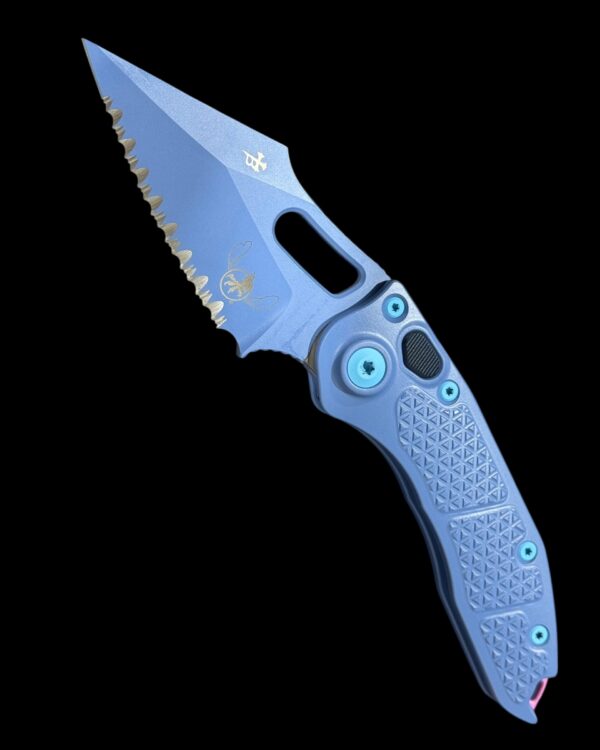 The Microtech Stitch® is a production version of the custom knife collaboration between Marfione Custom Knives® and Borka Blades. This model features a substantial choil and thumb ramp, spear point style blade and a knurled alloy handle with a black finish. Most of our Stitch® Auto knives come fitted with bead blasted hardware (unless DLC or Tactical) and a secure right hand, tip-up carry pocket clip.