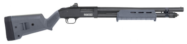 For the ultimate in shooting flexibility the 590S Series cycles 1.75 2.75 or 3 shells. Pick one shotshell length for specific shooting needs or simultaneously load any combination of those shell lengths. The choice is yours with the 590S. Features standard Mossberg Pump-Action Features: Dual extractors twin action bars positive steel-to-steel lockup and anti-jam elevator provide smooth operation. Other features include top-mounted ambidextrous safety matte blue metal finish magazine clean-out tube with cap and a logo-engraved receiver. – Optic-Ready – Mounted Holosun HS407K – Cycles 1.75 2.75 or 3 shells interchangeably – No need for mini shell adaptor – Redesigned Elevator Bolt Slide and a new Energy-Absorbing Bumper – Magpul SGA Adj Stock & MOE Forend – Standard features include dual extractors twin action bars steel-to-steel lockup and ambidextrous safety – Gauge 12 Gauge – Action Type Pump-Action – Chamber Size 3 Chamber with 1.75 Short Shell 2.75 and 3 Cycling Capability – Usage Security – Barrel Length 18.5 – Barrel Finish Matte Blue – Choke Accu-Choke System – Cylinder Bore Choke Installed – Capacity 5+1; 6+1; 9+1 – Length 38 – LOP 12.25-14.25 – LOP Type Adjustable – Sights Bead; Holosun Micro Dot – Stock SGA Adj Stock/Spacers & MOE Forend (Gray) – Weight 6.75