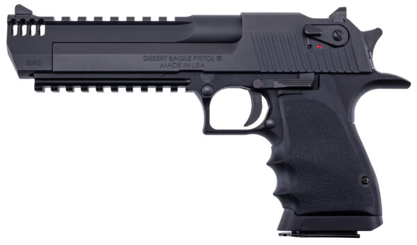 Model: Desert Eagle Mark XIX L6 Series – Caliber: 50AE – Finish: Black Steel Slide And Barrel – Action: Single Action – Frame: Black Hard Coat Alloy Frame – Sight: Fixed – Barrel Length: 6 – Overall Length: 10.75 – Weight: 44 oz – Capacity: 8+1 – # of Mags: 1 – Safety: Ambidextrous Safety – Slide: Aluminum Black Carbon Steel Slide – Muzzle: Integral Muzzle Brake