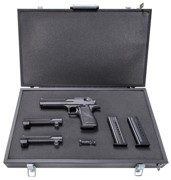 Action: Single – Caliber: 44 Rem Mag / 50 AE / 357 Rem Mag – Capacity: 8 / 7 / 9 – Finish: Black Oxide – Sights: Adjustable – Grips: Black – Barrel Length: 6 – Overall Length: 10.6 – Weight: 71.4 oz