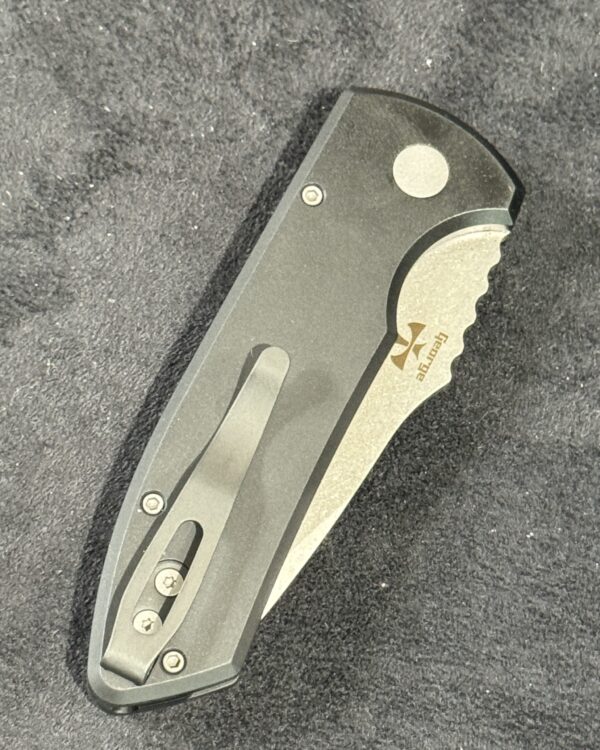 SBR featuring solid black hard coat anodized handles with grip textured milling, blasted hardware, black DLC coated deep carry clip, and a 2-tone blade with stonewashed bevels and machine satin flats.