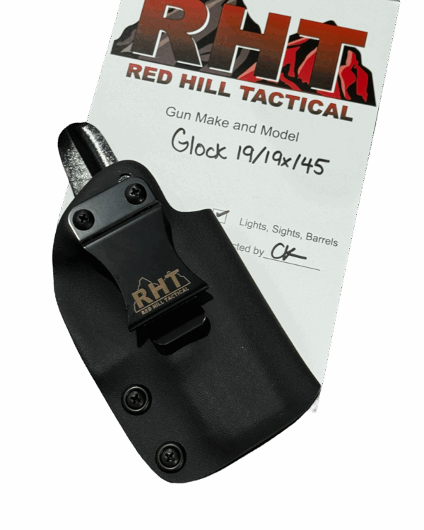 As we started working through the design process of the competition Glock 19 Compact with Rail holster, we decided that the same thing had to occur with an inside the waistband concealment holster. We knew that shooters wanted speed from the holster and rigidity, but the double layer was just too thick, so we stuck with a single layer, but continued to mold it using what we learned from our competition holsters. We then started cutting off material everywhere we could to try to get it as thin and small as we could, but still include the adjustable retention that people want. As always we have kept all of our holsters proudly Made in the USA.