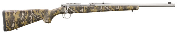 CALIBER: 357 MAG – Stock Desolve Bare Reduced Camo Synthetic – Front Sight Gold Bead – Rear Sight Adjustable – Barrel Length 18.50 – Capacity 5 – Thread Pattern 1/2-28 – Finish Brushed Stainless – Weight 5.6 lbs. – Twist 1:16 RH – Material Stainless Steel – Overall Length 38.50 – Length of Pull 13.50 – Grooves 8 – Threaded cold hammer-forged barrel with factory-installed thread protector results in ultra-precise rifling that provides exceptional accuracy and longevity. – Features a rugged stainless steel bolt with 90° bolt throw and rapid lock time for added accuracy. – Detachable rotary magazine features a unique rotor to separate cartridges and provide reliable feeding. Mounts flush with the stock to eliminate protrusions at the rifle’s balance point. – Integral scope mounts machined directly on the solid-steel receiver provide a stable mounting surface for included scope rings eliminating a potential source of looseness and inaccuracy in the field. – Three-position safety is easily accessible and allows the shooter to lock the bolt to load and unload the rifle with the safety engaged. – Also includes: sling swivel studs.