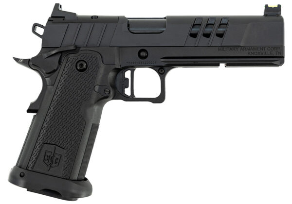 MAC 9 DS Duty 1911 Double Stack – The MAC 9 DS Duty redefines the modern duty pistol with its innovative design and robust features blending cutting-edge engineering with the classic 1911 platform. Crafted for shooters who demand durability precision and tactical versatility this powerhouse is ideal for personal defense professional duty or high-performance range sessions. – Key Features: – Premium Construction: Built with a carbon steel frame and slide featuring a Tenifer QPQ® finish the MAC 9 DS Duty offers exceptional durability and corrosion resistance. Its 4140 hammer-forged steel barrel ensures long-lasting performance and consistent accuracy. – Optics-Ready Design: Equipped with an Agency Optic System footprint the optic plate system allows easy mounting of your preferred red-dot sight for enhanced target acquisition. Includes AOS RMR Plate that will allow most optics to co-witness fiber optic front sight and serrated rear sight providing a reliable backup aiming solution. – Advanced Trigger System: Featuring a newly designed adjustable skeletonized trigger the MAC 9 DS Duty delivers a crisp responsive trigger pull for precise shot control. The skeletonized hammer further enhances performance with faster lock times and a sleek aesthetic. – Ergonomic Polymer Grip: The STI® compatible polymer grip module with a 25 LPI front strap and flat mainspring housing ensures a secure and comfortable hold. Designed for control and comfort during extended shooting sessions this grip enhances overall handling and stability. – Customizable Magazine Release: The new design interchangeable adjustable magazine release allows you to fine-tune your reloads offering tactical efficiency for professional users and competitive shooters alike. – High-Capacity Magazine: Featuring a STI pattern double-stack design the MAC 9 DS Duty comes with two stainless steel 17-round magazines ensuring you have ample firepower for any scenario. – Tactical Forward Serrations: The new forward slide serrations provide an enhanced grip for slide manipulations making press checks and reloads quick and efficient. – Engineered for reliability and crafted with precision the MAC 9 DS Duty Double Stack 1911 delivers unmatched performance and tactical versatility. Whether for duty use competitive shooting or personal defense this pistol brings innovation and classic 1911 craftsmanship together for a modern shooting experience. – Product Family: 1911 Double Stack – Action Type: Semi-Auto – Operation: Single Action – Caliber: 9 MM – Frame/Slide Finish: QPQ Tenifer – Optics Ready/Cut: Agency Optic System RMR Included – Capacity: 17+1 – Sights: Black Serrated Rear Fiber Optic Front – Barrel Length: 5 – Threaded: No – Barrel Finish: QPQ Tenifer – Length: 8.8 – Height: 6 – Width: 1.5