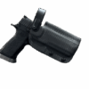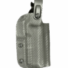 It is available only in the tried and true double layer configuration. This features two layers of .08 thick Kydex to add a great deal of structure to your holster. The extra rigidity supports the low cut that we use, as well as reduces the flex that happens when you push the activation on a single layer of Kydex. In addition to the stability, it gives you the ability to further add to the custom look of your rig. We feature everything from solid colors, carbon fiber look, and many custom camouflage patterns including Kyrptek, Supercam, Hexcam and more.