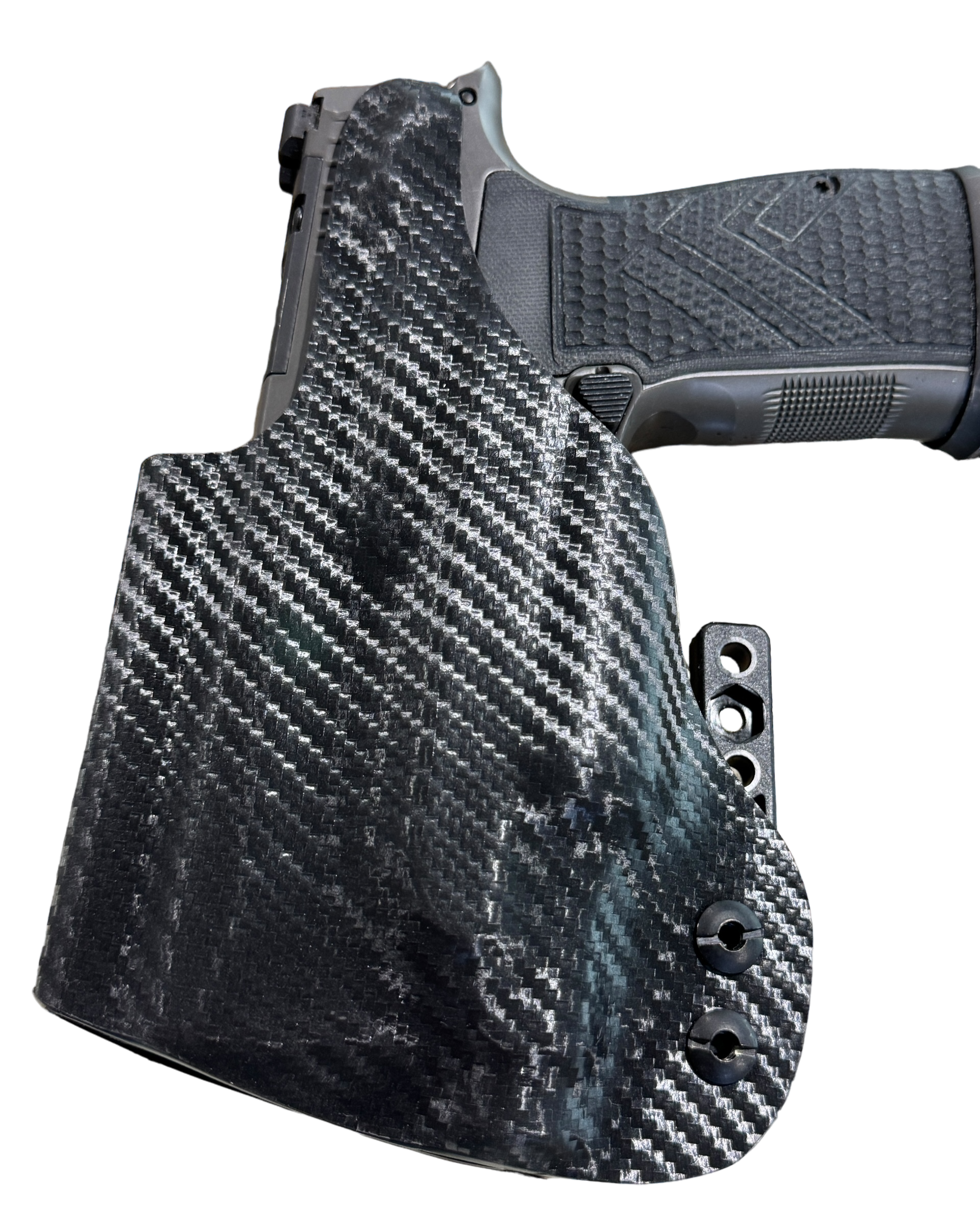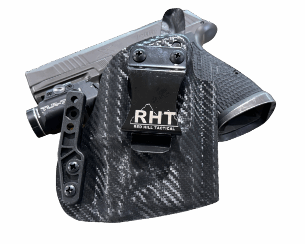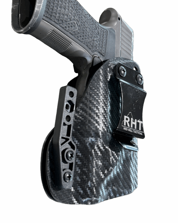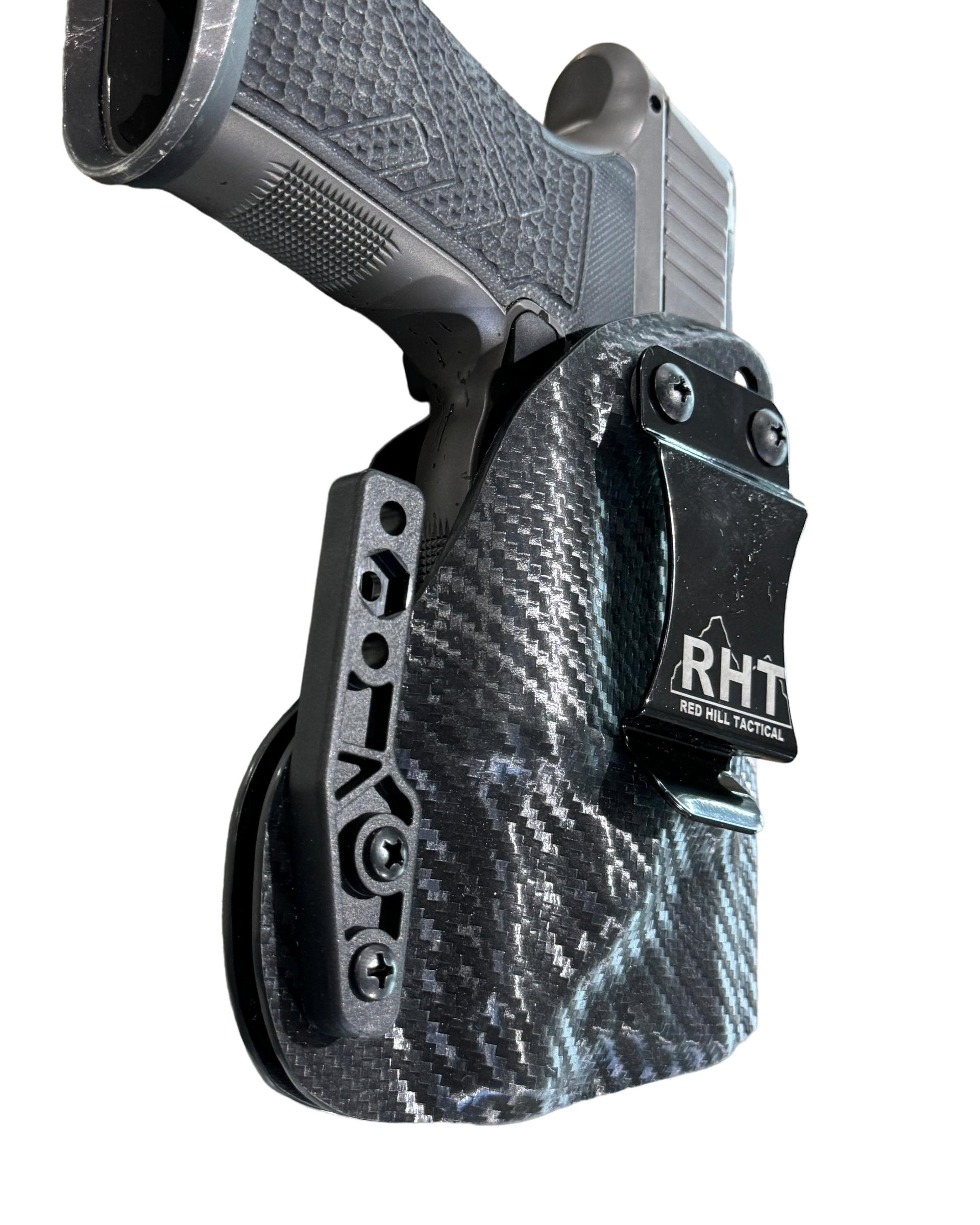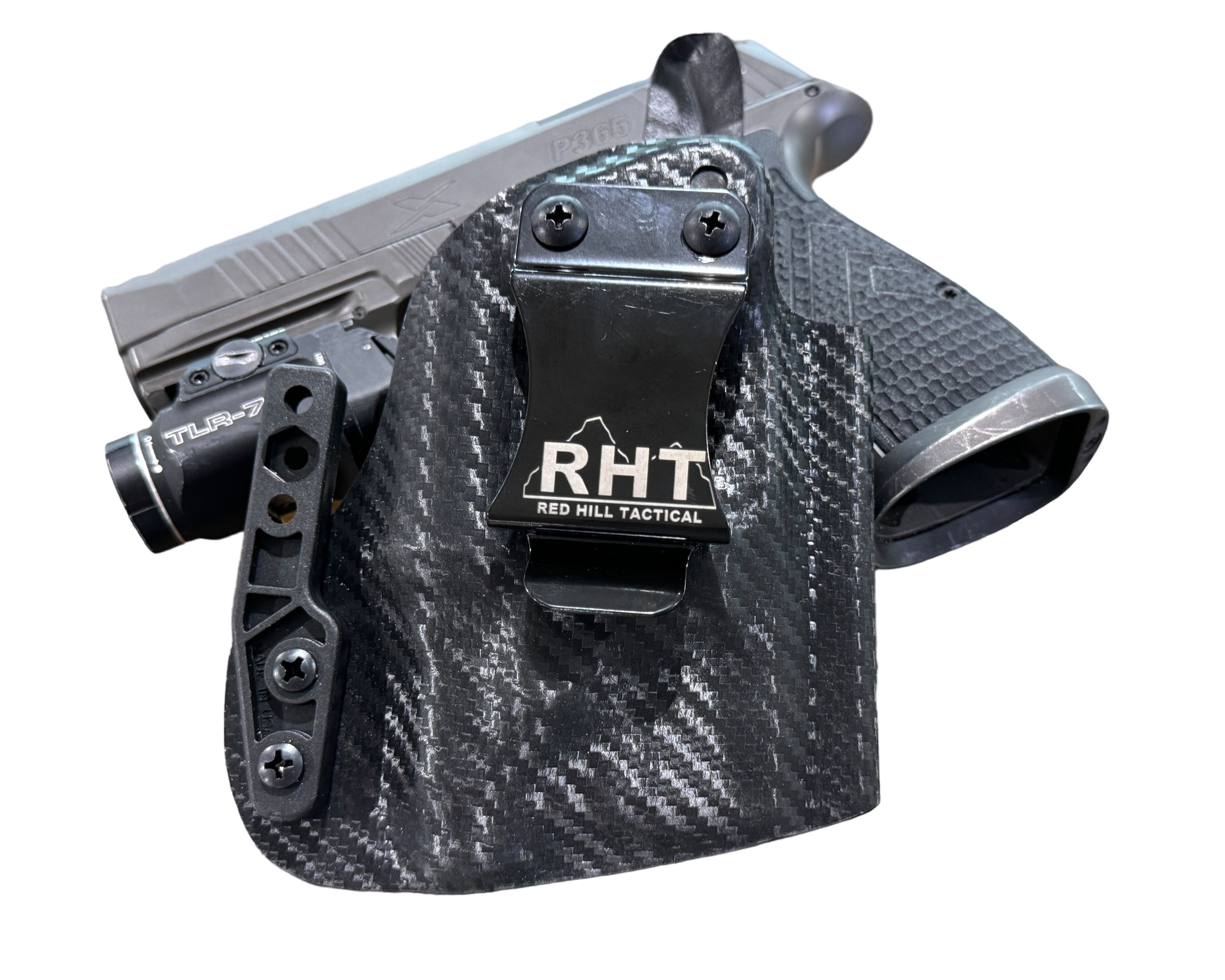 As we started working through the design process of the competition Sig P365 AXG Legion w/ TLR-7 Sub holster, we decided that the same thing had to occur with an inside the waistband concealment holster. We knew that shooters wanted speed from the holster and rigidity, but the double layer was just too thick, so we stuck with a single layer, but continued to mold it using what we learned from our competition holsters. We then started cutting off material everywhere we could to try to get it as thin and small as we could, but still include the adjustable retention that people want. As always we have kept all of our holsters proudly Made in the USA.