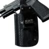 This holster ready to ship comes with a 1.5″ belt clip on it. If you are looking for something more, I would suggest look at our custom options.