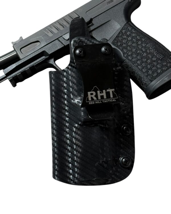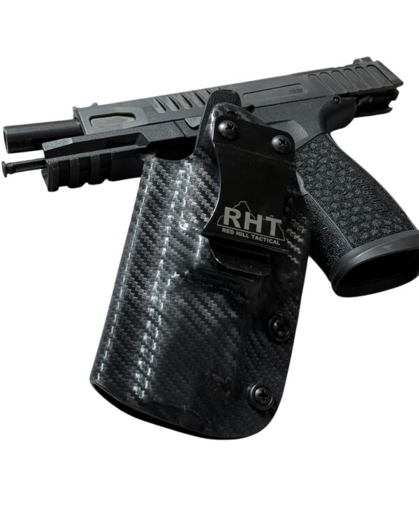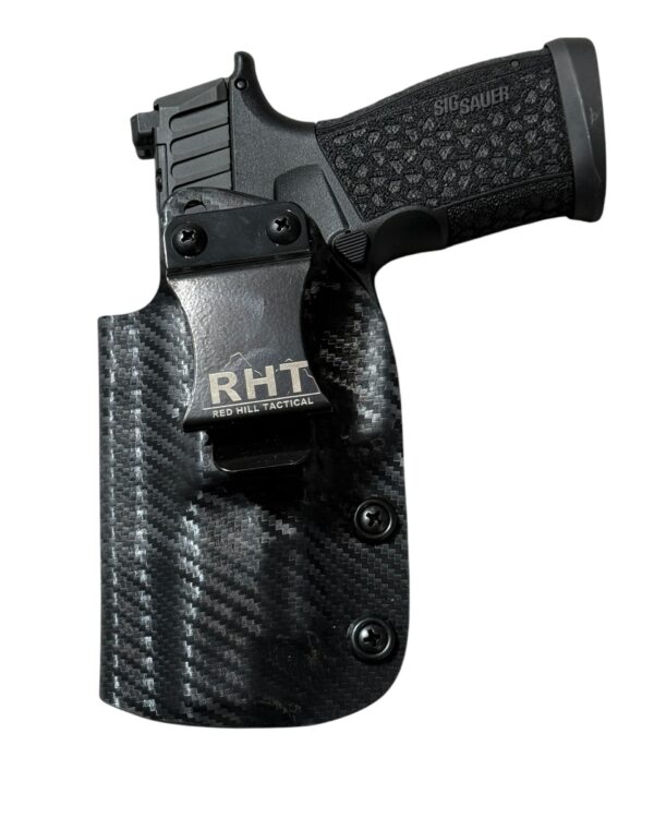 As we started working through the design process of the competition Sig P365-Fuse holster, we decided that the same thing had to occur with an inside the waistband concealment holster. We knew that shooters wanted speed from the holster and rigidity, but the double layer was just too thick, so we stuck with a single layer, but continued to mold it using what we learned from our competition holsters. We then started cutting off material everywhere we could to try to get it as thin and small as we could, but still include the adjustable retention that people want. As always we have kept all of our holsters proudly Made in the USA.