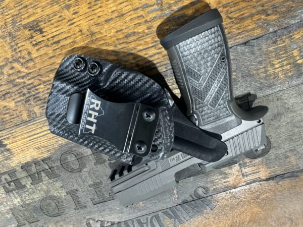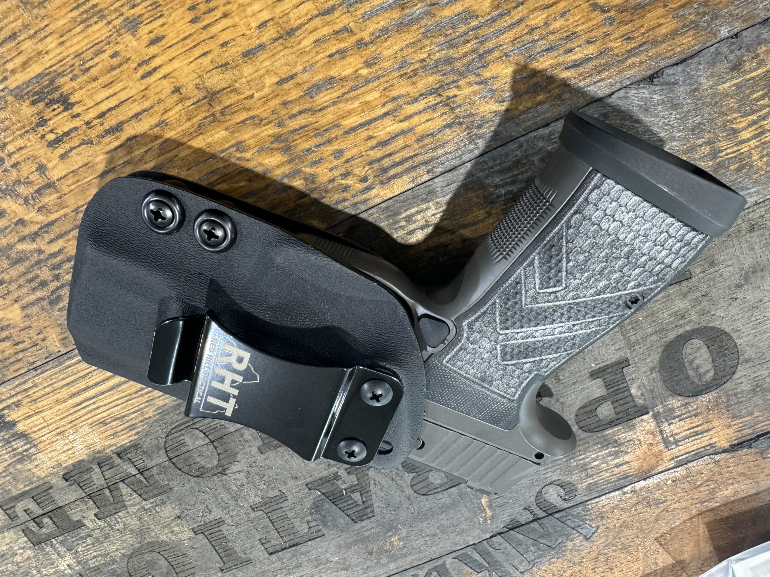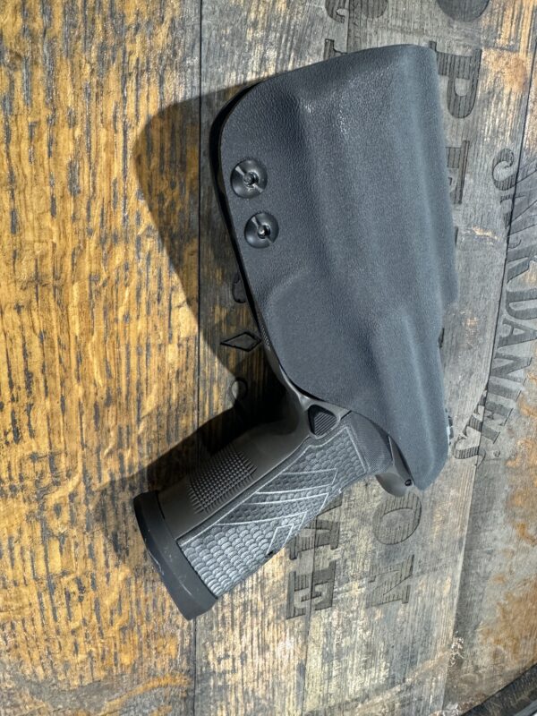 As we started working through the design process of the competition Sig P365 XMacro holster, we decided that the same thing had to occur with an inside the waistband concealment holster. We knew that shooters wanted speed from the holster and rigidity, but the double layer was just too thick, so we stuck with a single layer, but continued to mold it using what we learned from our competition holsters. We then started cutting off material everywhere we could to try to get it as thin and small as we could, but still include the adjustable retention that people want. As always we have kept all of our holsters proudly Made in the USA.