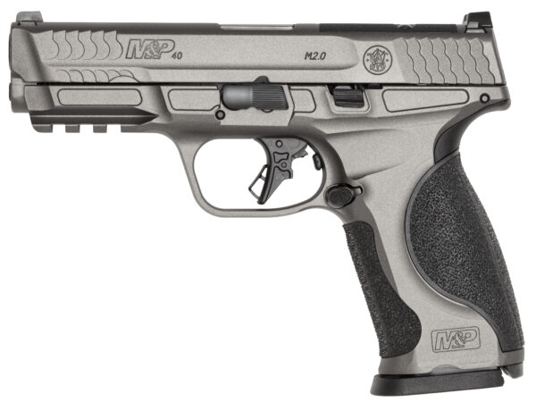 The performance that began with our polymer construction is now forging forward. The lightweight and rigid metal frame of the Smith & Wesson M&P M2.0 Metal provides an extraordinary foundation for higher performance. – Optimal 18-degree grip angle for natural point of aim – Four interchangeable palmswell grip inserts for optimal hand fit and trigger reach- S M ML L – Textured polymer front strap – Wide slide stop – Reversible magazine release – Slide cut for optics – M2.0 flat face trigger for consistent finger placement that allows for more accurate and repeatable shooting – Picatinny-style rail – Low barrel bore axis makes the M&P pistol comfortable to shoot reducing muzzle rise and allowing for faster aim recovery – Enhanced sear for lighter crisper trigger let-off – Accurate 1 in 10 twist barrel – M&P’s patented take-down lever and sear deactivation systems allow for disassembly without pulling the trigger – width 1.3 in – length 7.4 in – height 5.5 in – weight 30 oz – CALIBER 40 S&W – SIZE FULL – CAPACITY 15 – ACTION STRIKER FIRED – BARREL LENGTH 4.22 – GRIP POLYMER – SIGHTS WHITE DOT – OPTIC READY YES – SAFETY NONE – COLOR/FINISH GRAY – BARREL MATERIAL STAINLESS STEEL – FRAME ALUMINUM – NUMBER OF MAGAZINES 2